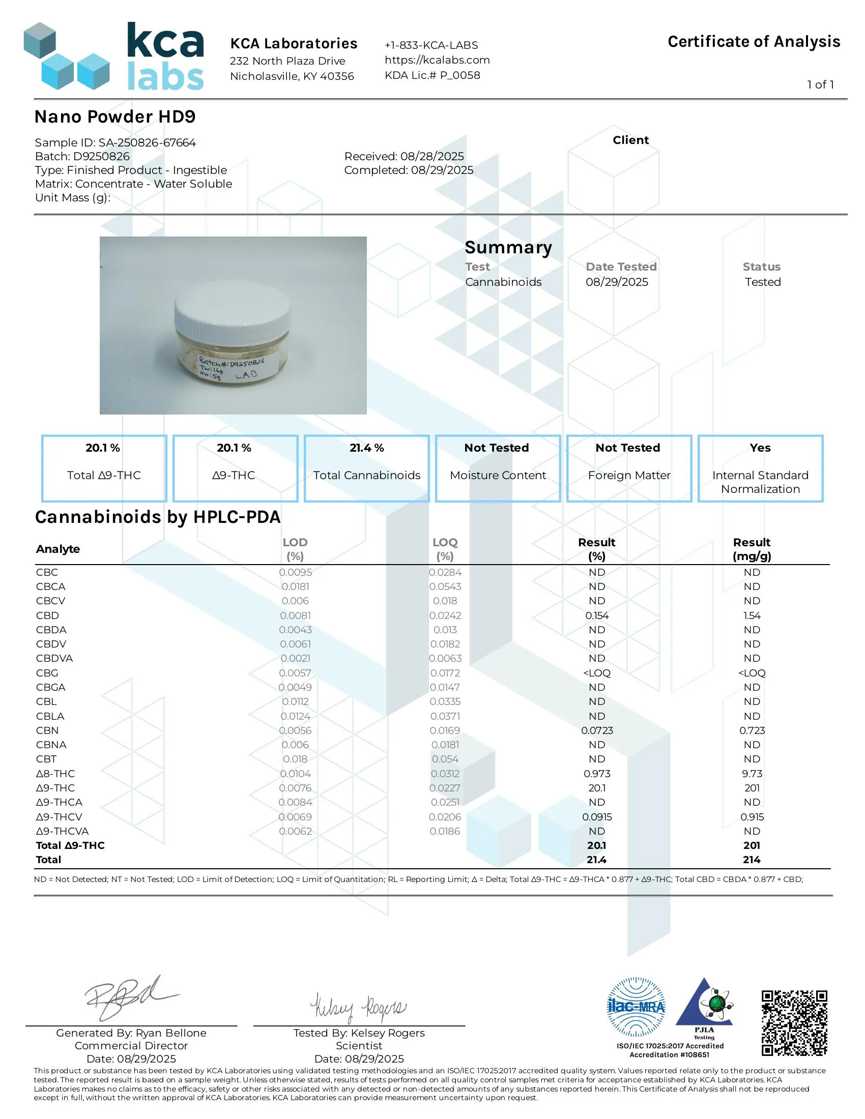 This unflavored Delta 9 nano powder delivers a streamlined, bulk format designed for effortless blending and precise portioning. Crafted in small batches and engineered with nano-emulsification, it disperses evenly in liquids or recipes and keeps your experience consistent from one mix to the next. Total strength: 100g.